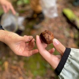 大粒のミズナラのドングリは宝物。ポケットぱんぱん。